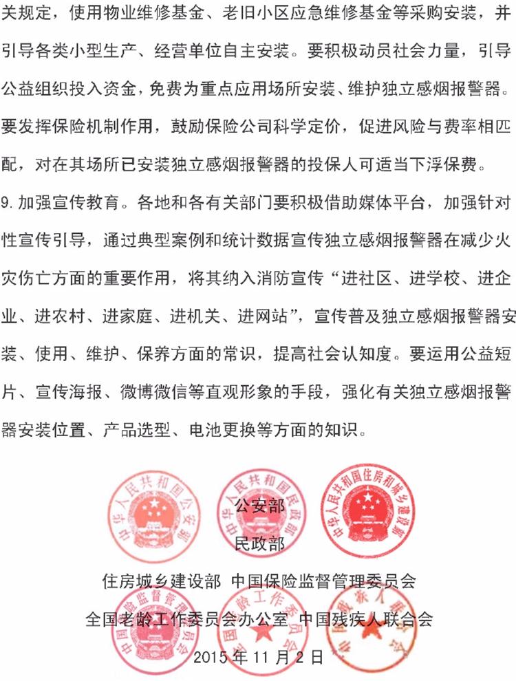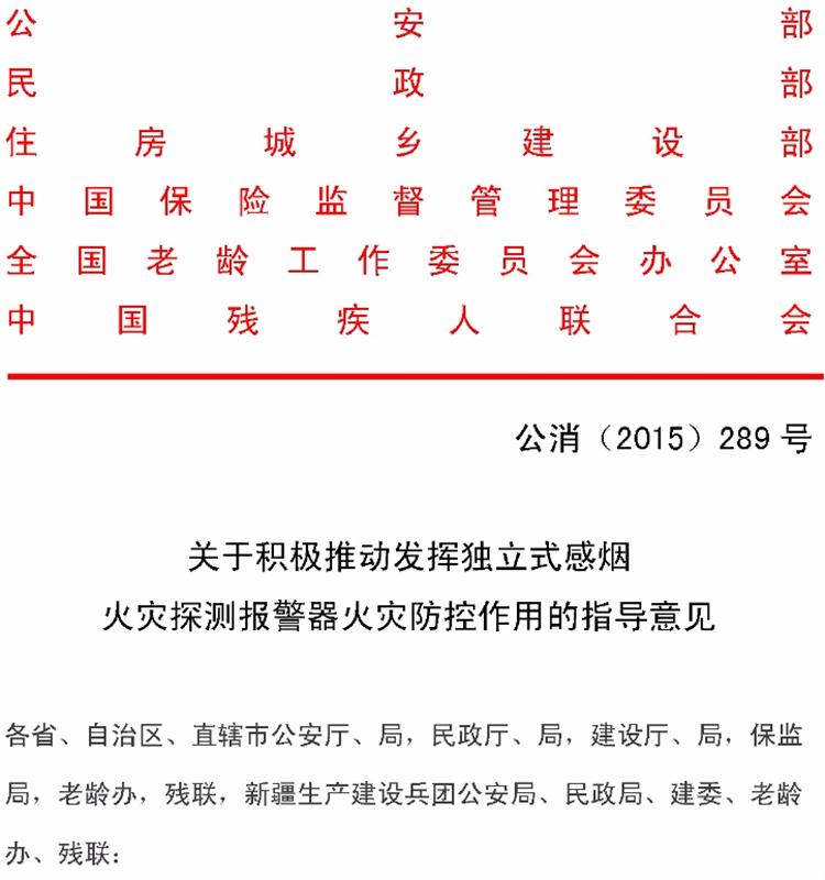 【獨(dú)立式煙感】火災(zāi)探測(cè)報(bào)警器六部委支持文件